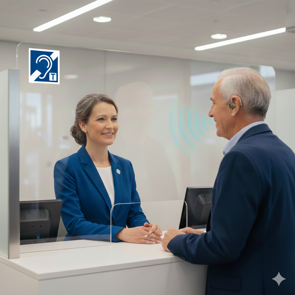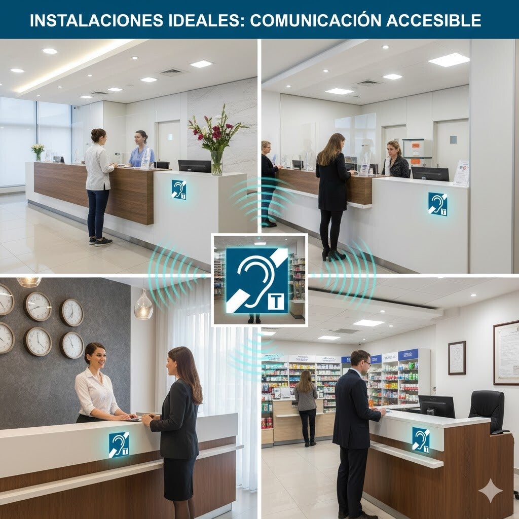 Cada interacción cuenta. En un mostrador de atención —ya sea en una clínica, banco, administración pública o punto de información— la comunicación debe ser inmediata, directa y sin esfuerzo. Para muchas personas con pérdida auditiva, incluso una conversación breve puede resultar difícil si hay ruido ambiente, cristal de separación, distancia o mascarillas.
